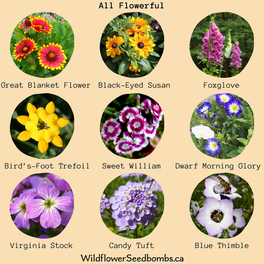 Wildflowers attract pollinators, giving them food and shelter, as well as providing beautiful scenery. Because our seedbombs are made up of the very best blend of clay, nutrients, soil, and seeds, they have their own ideal ecosystem, giving them an advantage over simply scattering seeds. The clay and other carefully selected components protect the seeds from birds, ants, and slugs and aids the root system until the clay of the seedbombs biodegrades. Seedbombs can be kept for years before being used, so truly are perfect for sowing anytime, anywhere.